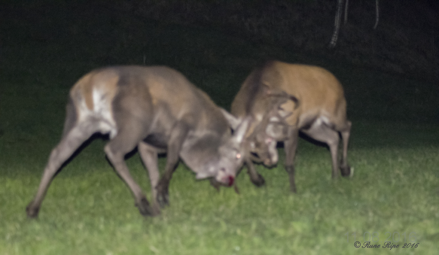 To hjortebukkar kjempar om kollenes gunst på Sigdestad i Ålfoten 17.10.2016